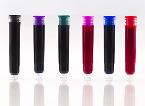 Fountain Pen Ink Refill Cartridges International Standard Size (BIG VALUE PACK OF 24) ZenZoi Cartridge Set 6 Color Variety Blue Black Red Green Pink Purple Generic Disposable 100% Quality Guarantee