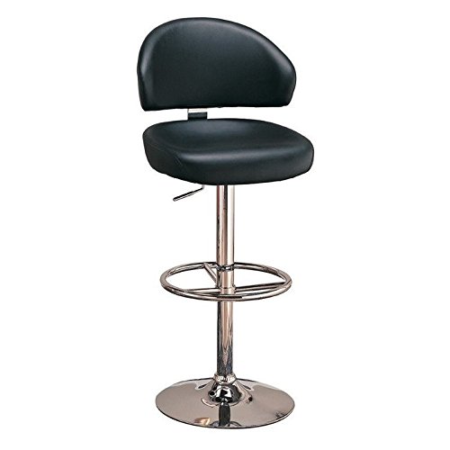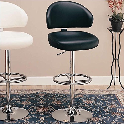-. Feature : 360 degree swivel seat / Adjustable height - Counter to Bar Height / Chrome foot rest and stand / Faux leather seat with padded cushion / Easy to clean, just wipe with damp cloth