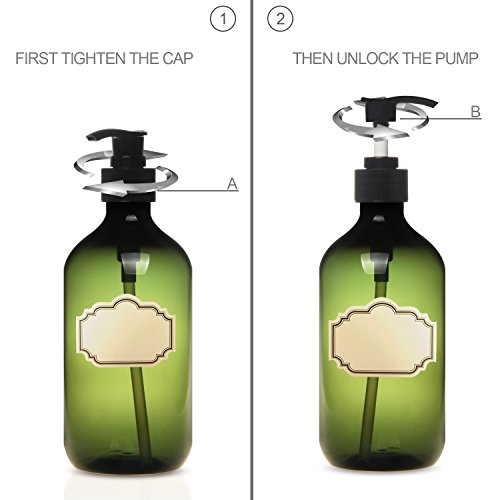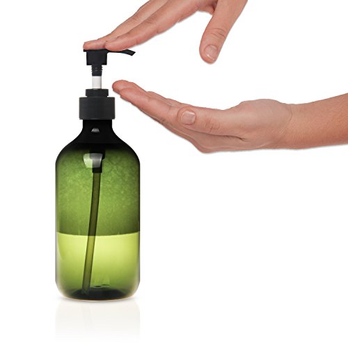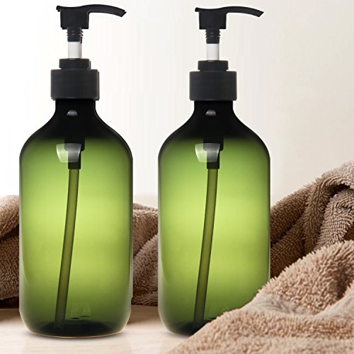 Green Plastic pump bottles can hold about 500ml/16 Oz liquid.