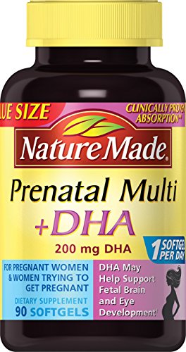 Nature Made Prenatal Multi + DHA combines the key nutrients of a prenatal multivitamin with 200 mg of omega-3 fatty acid DHA into one softgel.
