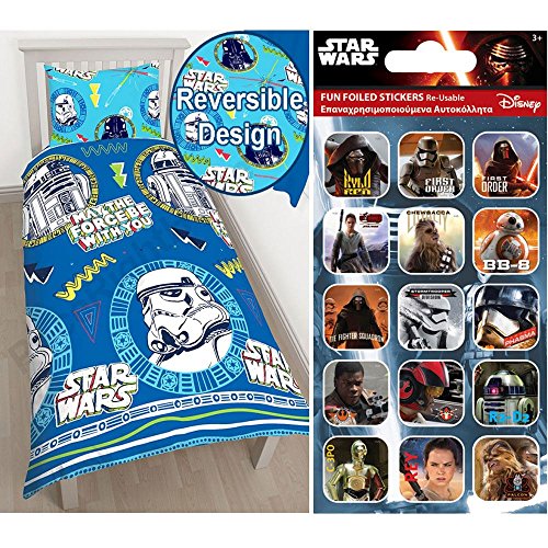 Star Wars Classic Doodle Single Duvet Cover and Pillowcase Set Free Small Foil Caption Stickers - Official Star Wars merchandise