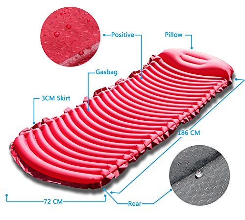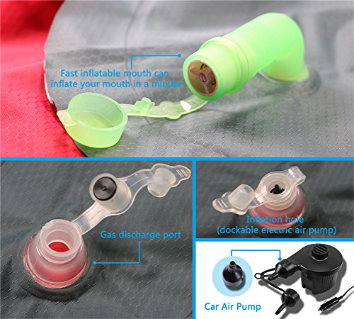 - Feature : Professional buckle on out-skirts can be jointed each other,switch to single bed and double bed freely.Built-in pillow design ,flat bedding,infrared reflection,stressed uniformly,warm sleeping. / The carrying bag is also a dry bag.When you boating rafting or swimming,it will protect your phone,wallet and bankcard from water. / Two charging port were designed ,charging connector can charge by mouth in one minute,another double-deck TUP charging port can charge by air pump quickly. / High Intensity TPU Salivation Material,environmental nylon material and silicone oil waterproof design. / Product size:Ultralight outdoor design,Only 600g(1.32 Pounds),72.83x29.52x3.15 inches(L x W x H).Pillow is 5.9 Inch high.Package size:4.72x9.45 inches,Easy to carry.