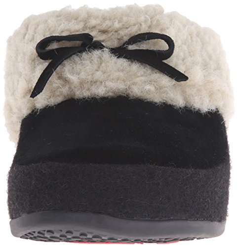 Studio : FitFlop Publisher : FitFlop Binding : Apparel Product Description When it's chilly outside, treat your feet to the fitflop The Cuddler slipper. This women's mule comes equipped with an indoor/outdoor rubber sole for grip and durability. The suede and Italian felt upper is backed up by a padded microfiber lining to surround your foot in softness; the pile trim adds to the coziness. Underfoot, a signature MicrowobbleboardTM midsole delivers excellent shock absorption, reducing pressure when you're on your feet in the fitflop The Cuddler slipper clog. 0