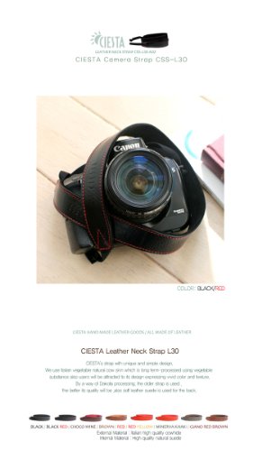 Ciesta CSS-L30-A02 Leather Camera Strap L30 (Black/Red Stitch) for Toy Compact DSLR Mirrorless Camera
