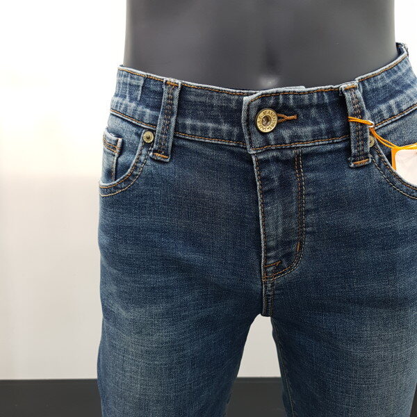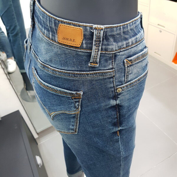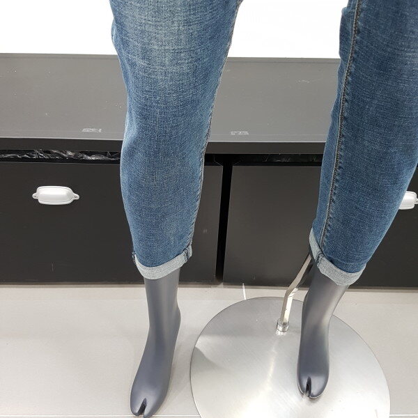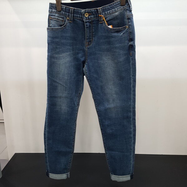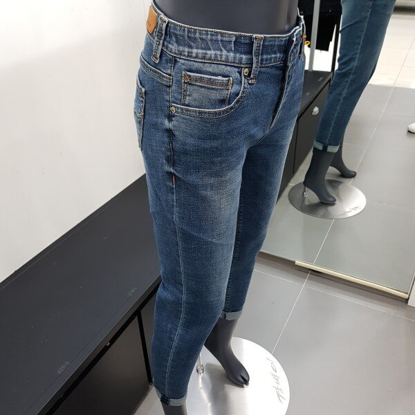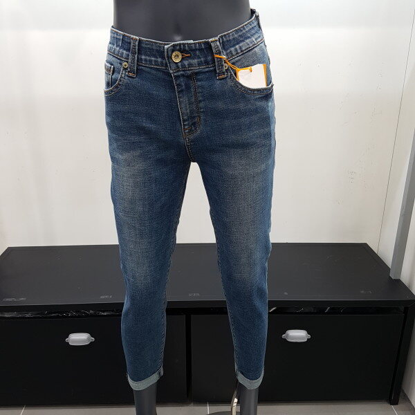유니크한 그린 빛이 도는 인디고 칼라의 바이오 스톤 워싱 여성 BF핏 데님 스타일입니다.