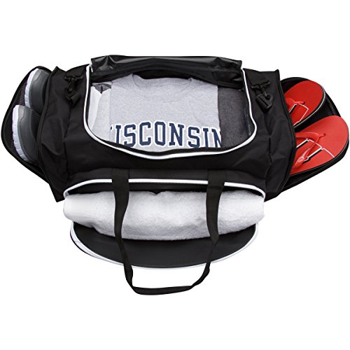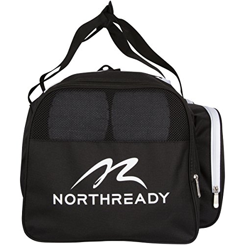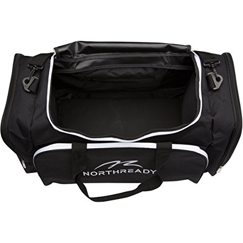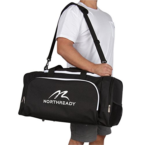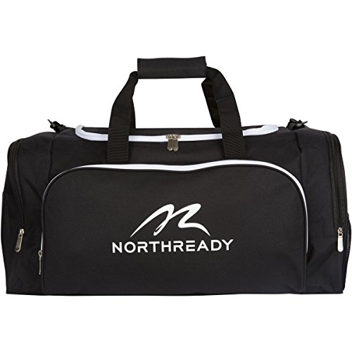 -. Binding : Misc. -. Brand : NORTHREADY -. Color : Black -. Department : mens -. EAN : 0782301595163 -. Feature : SALE TODAY! DURABLE STRENGTH: Sturdy duffel bag made with 600D Black Polyester exterior provides long lasting wear you can feel. Durable top quality zippers open and close the gym bag smoothly with each pull. / LINED: Interior waterproof lining in main compartment and side walls keeps wetness away. / POCKETS ALL AROUND: Front large pocket and 2 large side pockets for all your sport gear and accessories. 1 side pocket also provides ventilation to air out shoes or damp items and the other with a mesh outer pocket for your water bottle storage. Plus an interior accessory pocket for keys, phone etc. / CAN FIT YOUR SHOES:You can pack your gym shoes any way you want. A size 12 mens running shoes can fit in either side pocket, the main compartment or even the front if you like. Men, women, teens and kids are sure to appreciate the options. / MEDIUM BUT LARGE:24.5"x12"x13" End to end the bag measures 24.5", a half inch longer than the Team Speed Medium and slightly shorter than the Under Armour Storm Undeniable II Medium Duffel. Yet the main compartment is an easy 19" wide for plenty of room to store all your fitness things for the gym or as a handy travel bag. Customers say its use of space makes it larger than expected. Use the adjustable shoulder strap or wrap handle, whichever is best for you, for easy carry. -. IsAutographed : 0 -. IsMemorabilia : 0 -. MPN : NRDUF7901 -. PackageQuantity : 1 -. PartNumber : NRDUF7901 -. ProductGroup : Sports -. ProductTypeName : SPORTING_GOODS -. Title : NorthReady Sports Duffel, for Sport /Travel, 24.5"W Medium Large Durable Gym Bag -. UPC : 782301595163