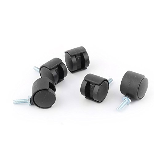 uxcell Plastic Household 6mm Dia Threaded Screw Stem Double Swivel Caster Wheel 5pcs Black