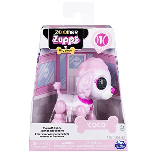 Zoomer Zupps – Tiny Pups! These interactive pups respond to your touch! Pet their heads or press their noses for sweet puppy sounds. The more you play with them, the happier they’ll be! With adorable light up eyes, each Zoomer Zupp has a special look, a unique secret trick, a fun ‘Zupp’ game, and will even bark “I love you!” These kid-powered pups love to play! Adopt the whole litter of Zupps (collector card included)! Zoomer Zupps are pocket-sized sweetness from head to paw!Feature