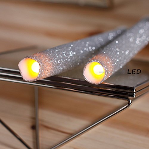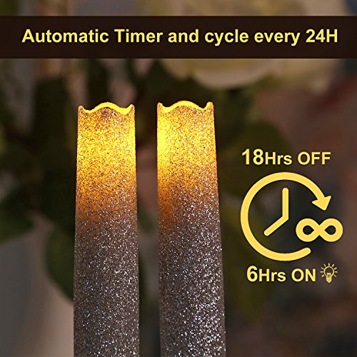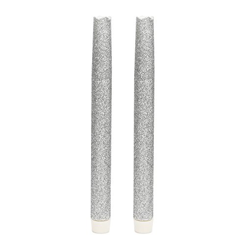 9 Inches Melted Led Taper Candles with Timer,Battery Operated,with Silvery Glitter,Pack of 2
