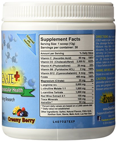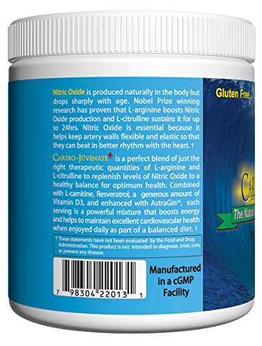 -. Feature : Powerful Cardiovascular Rejuventation formula based on 1998 Nobel P.R.Ize Winning research by Dr. Louis Ignarro is now available in a great tasting and refreshing drink / 5000mg L-arginine, 1000mg L-citrulline, and 1000mg L-carnitine in every serving provides over 24 hours of Nitric Oxide production / 2,500IU Vitamin D3 and other Powerful Anti-Aging compounds including Resveratrol (Red Wine Extract) / 30 servings per jar provides a perfect daily balance for up to a month. Start rolling back the clock on YOUR inner body! / *** GLUTEN-FREE and GMO-FREE ***