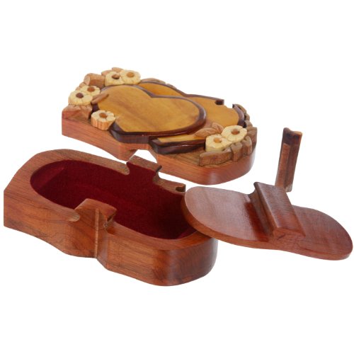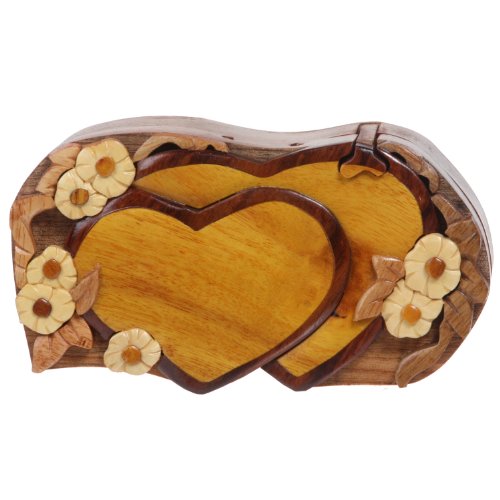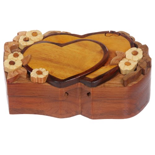 Handcrafted Wooden Double Heart Shape Secret Jewelry Puzzle Box