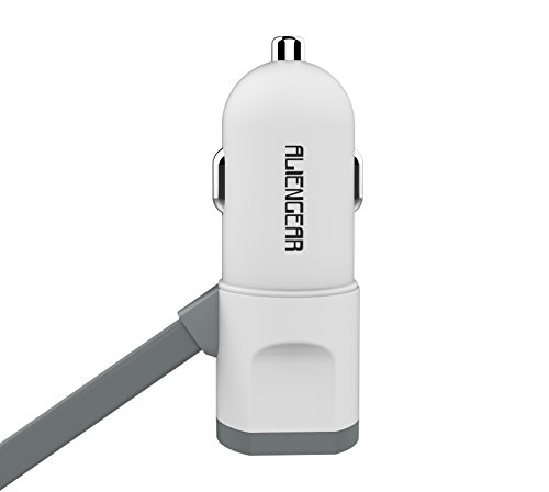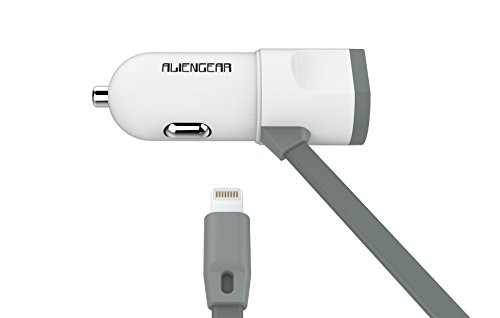 iPhone Car Charger, Aliengear [Apple MFI Certified] Lighting Car Charger for iPhone 6S / 6S Plus, 6, 6 Plus, SE, 5, 5S, iPad Pro, Air 2, Mini 3 ,with Extra USB Port (White)