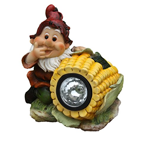 SINTECHNO SNF13007-4 Cute Gnome Sculpture with Yellow Corn Solar Light