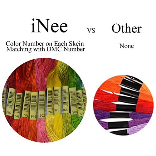 iNee Embroidery Floss 50 Skeins Embroidery Thread, Six-Strand Cross Stitch Floss, Color Number on Each Skein Matching with DMC Thread Number, 50 Skeins per Pack