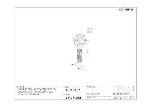 Sealmaster CFML 8Y Rod End Bearing With Y-Stud, Two Piece, Commercial, Non-Relubricatable, Left Hand Male to Right Hand Male Shank, 1/2"-20 Shank Thread Size, ±25 degrees Misalignment Angle, 1.469" Thread Length