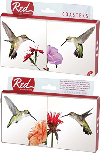 Hummingbirds in Flight Flowers 4 Piece Absorbent Ceramic Coaster Set