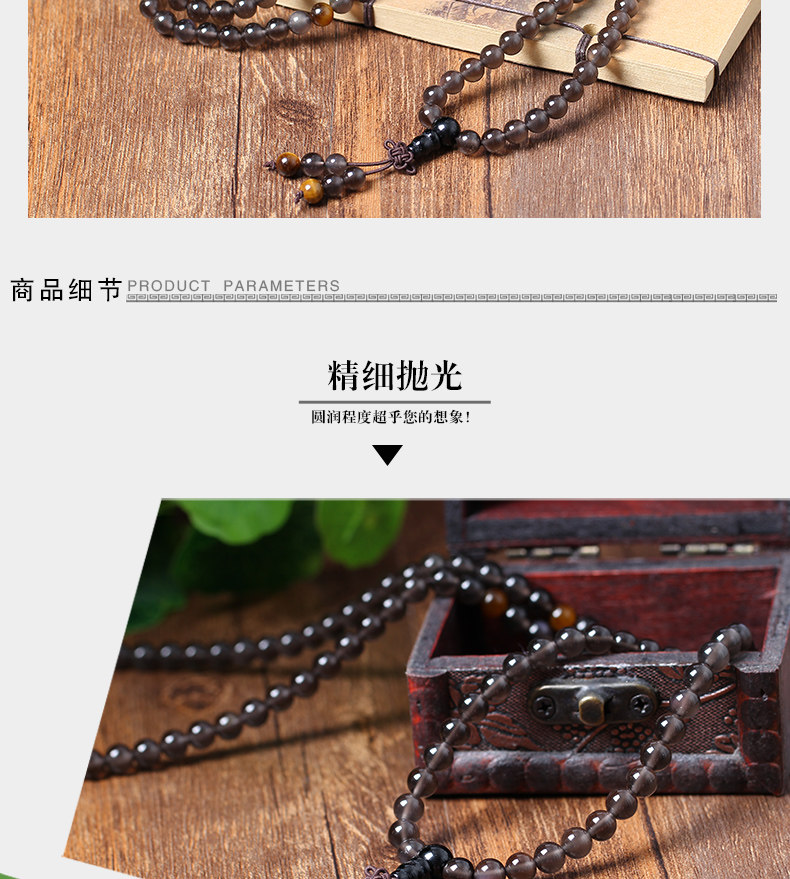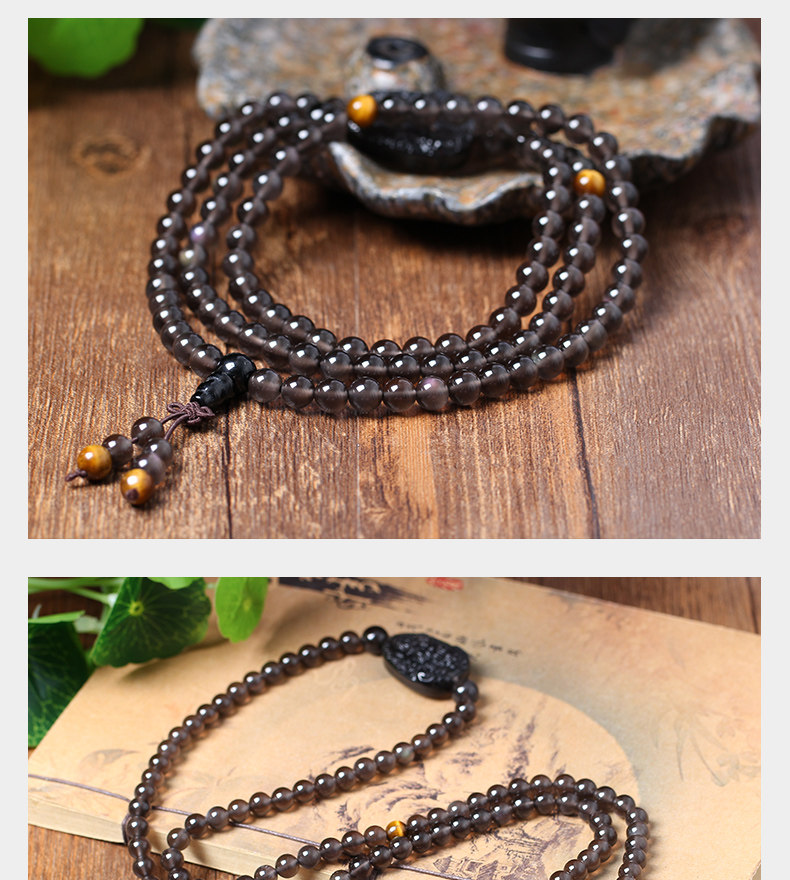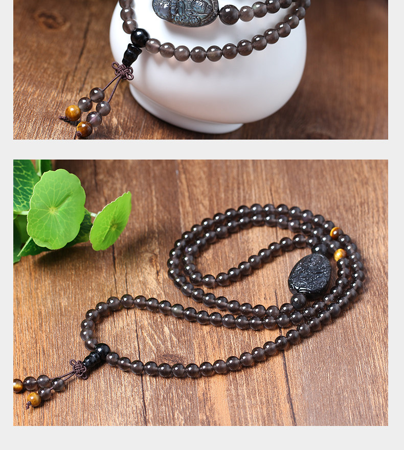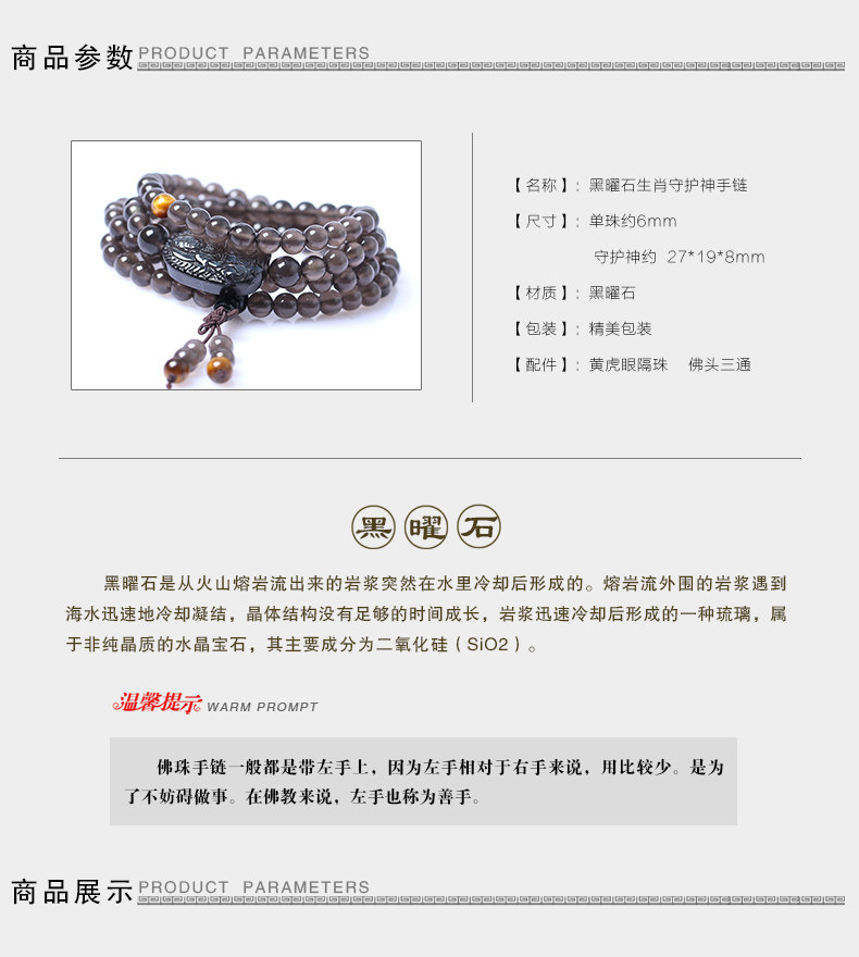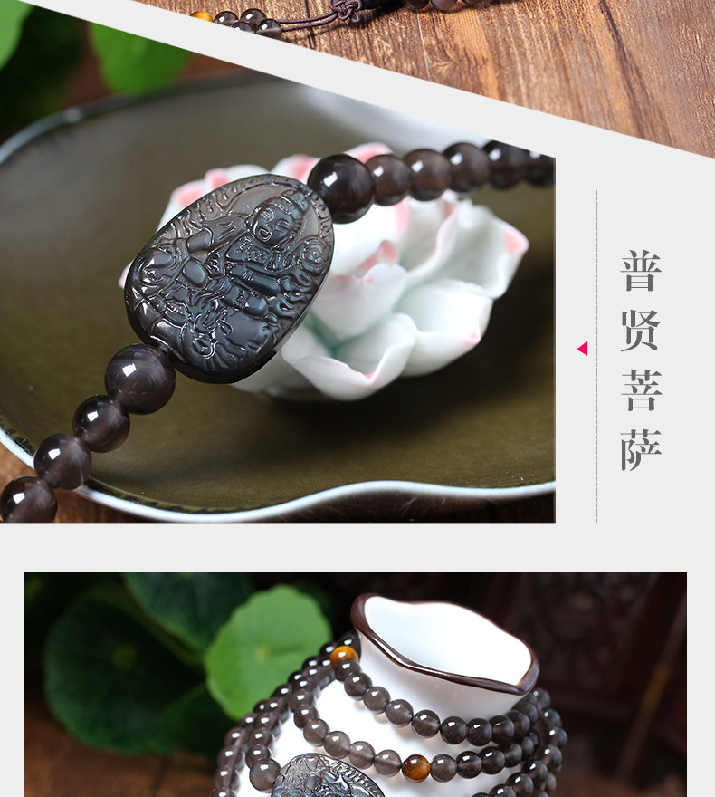 开光冰彩黑曜石五行手链属龙本命佛黑曜石普贤菩萨佛珠手链