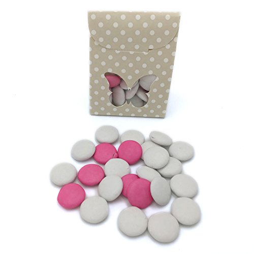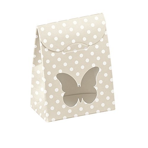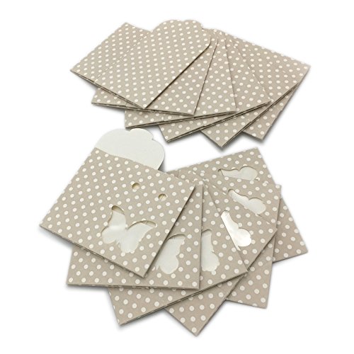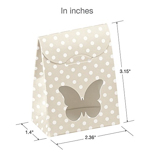 Decorative Gift Favor Box with Lid Butterfly Cutout, Set of 12, Best Designer Quality for Birthday, Wedding, Parties, Easy Fold, No Assembly Required, Light Brown White Polka Dots (2.4 x 1.4 x 3.1 in)
