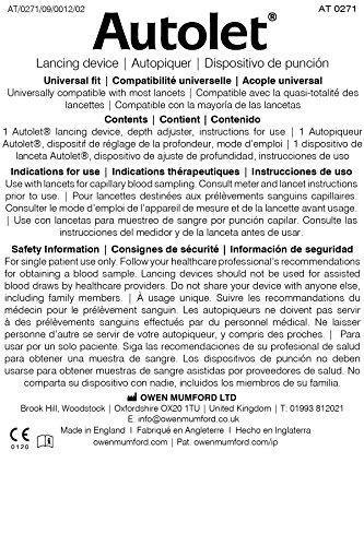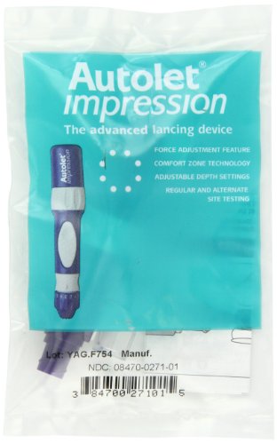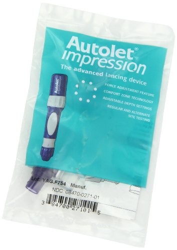 ReleaseDate : 2009-09-01 Studio : Owen Mumford, Inc Publisher : Owen Mumford, Inc Binding : Health and Beauty Product Description Autolet Impression Advanced Lancing Device combines advanced technology and unique features in one capillary blood sampling device to provide users with ultimate control and comfort. This small pen-style device features seven depth settings for taking blood samples from your fingertips or alternate sites. Autolet Impression can be used with virtually any lancet. 0