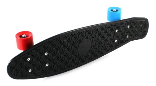 - Title : Retro Wave Cruiser Complete 22" Banana Skateboard (Black w/ Blue/Red Wheels)