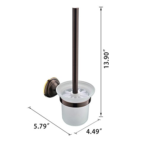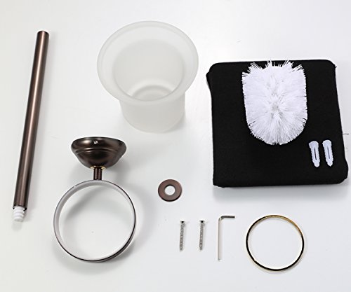 CROWN Bronze Toilet Brush and Holder Wall Mount Oil Rubbed Bronze Bowl Brush & Caddy, Solid Brass & Frosted Glass for Bathroom CR205