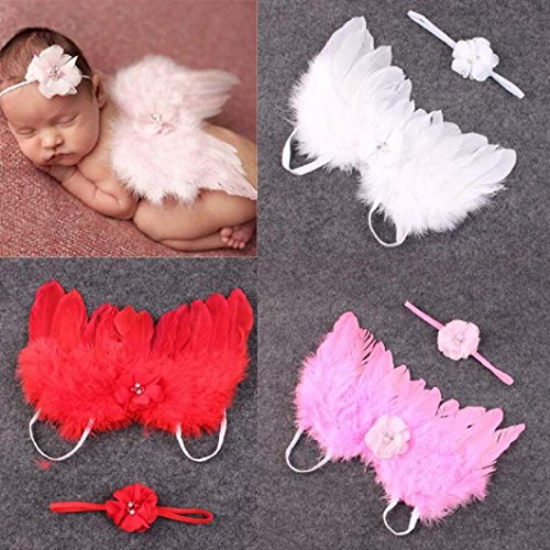 -. Feature : Color:Pink,Red,White / Size:One size,suitable for 0~6 months baby / Baby hair accessories:photo prop Christening / If you have any question,please contact us we will do our best to solve the problem for you / Package Include:1X Angel's feather wings+1X Head Band