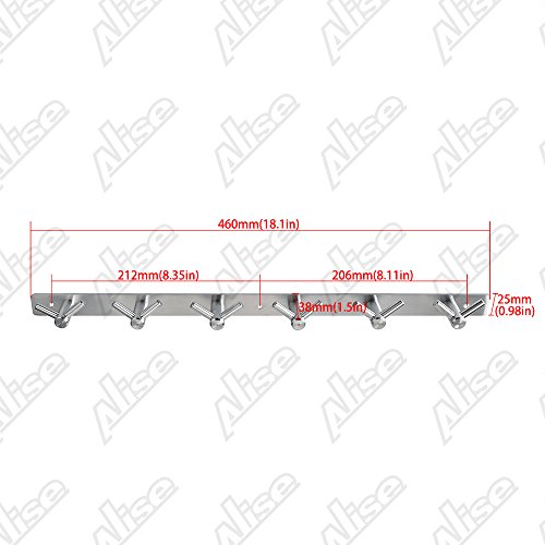 Alise Bathroom Towel Hook Towel Robe Coat Rack/Rail with 6 Double Hooks Wall Mount,SUS304 Stainless Steel Brushed Finish