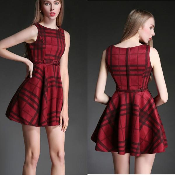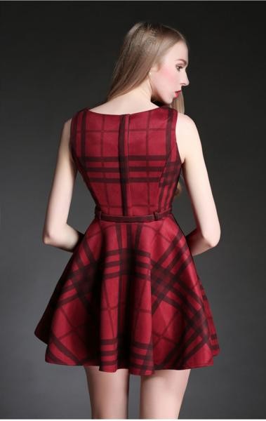 チェック Aライン ノースリーブ ミディアム