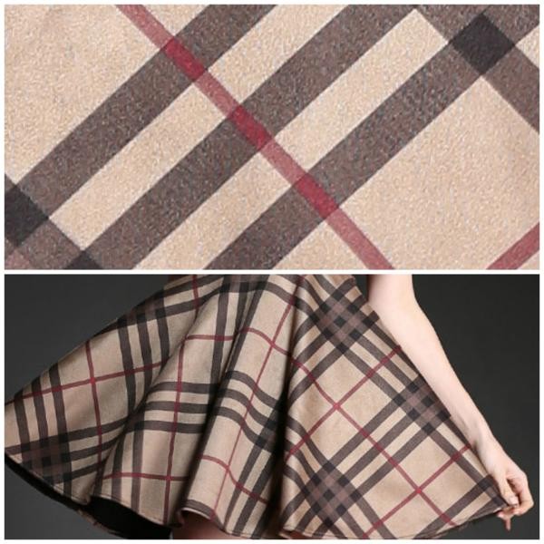 大きめタータンチェック柄 ノースリーブ Aラインフレアワンピース ブラウン/ M