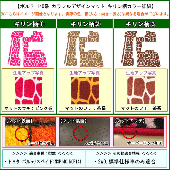 | ■商品名 | ・カラフルデザインマット キリン柄 (車両一台分) |