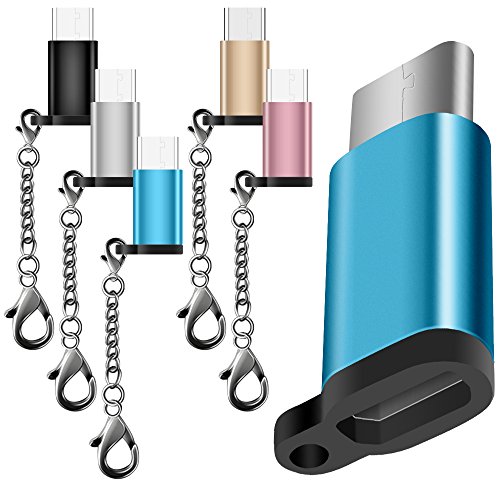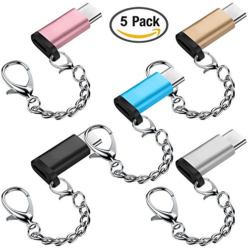 5 Pack USB Type C Adapter with 5 Colors, AFUNTA USB C to Micro USB Convert Connector Fast Charger with Keychain for Samsung Galaxy S8 New Macbook Pixel XL Nexus 5X 6P