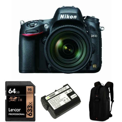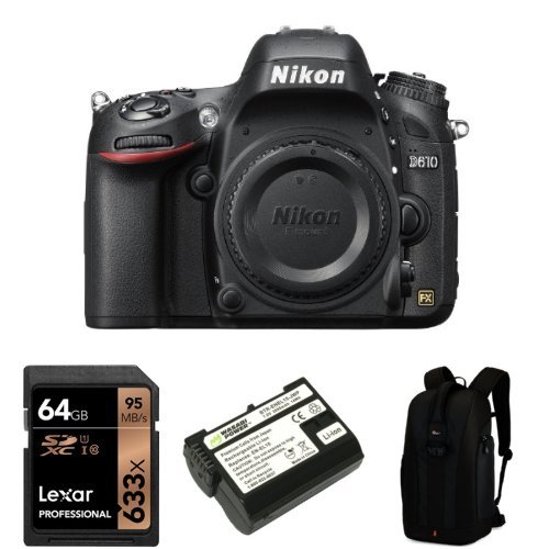 The Nikon D610 Digital SLR Camera has the power of a 24.3 MP Nikon FX-format CMOS sensor in a compact, streamlined HD-SLR body. Create brilliant full frame images and 1080p videos. Capture every detail in stunning clarity with Nikon's superior 39 point AF system with Scene Recognition. Additional features include: 6 FPS burst shooting, 3.2-inch LCD, ISO expandable to 25,600, plus much more.