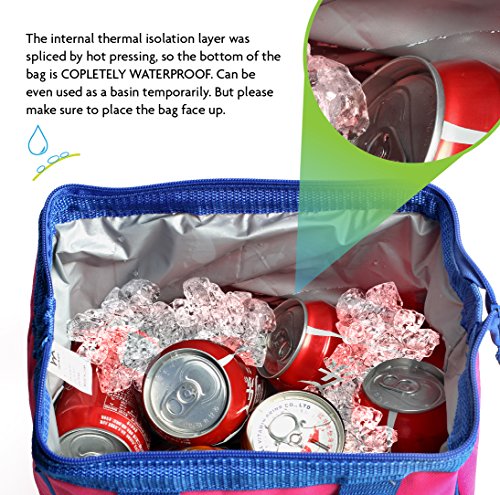 Merkapa Lunch Cooler Tote Bag Insulated Freezable Cooler for Office School Travel Use (Pink)