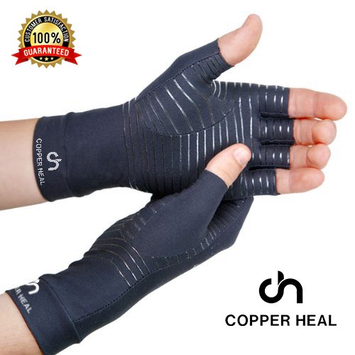 COPPER HEAL Arthritis Compression Gloves - BEST Medical Copper Gloves GUARANTEED to work for Rheumatoid Arthritis, Carpal Tunnel, RSI , Osteoarthritis & Tendonitis - Open Finger