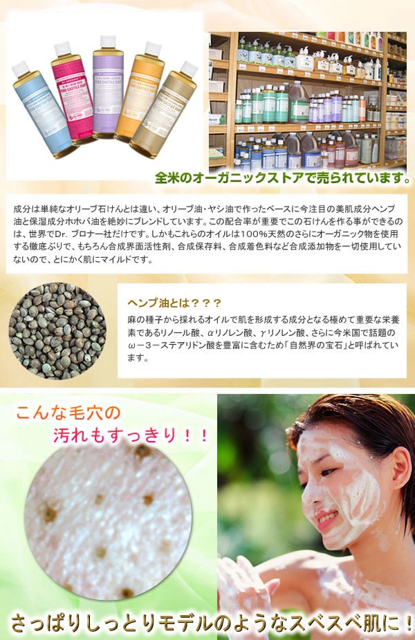 全米売り上げNo1天然ソープ!100%オーガニック原料で作った液体ソープ。メイク・毛穴の汚れまですっきり落とすのに洗い上がりはとってもマイルド。もちろん合成界面活性剤・合成保存料・合成着色料など合成添加物一切不使用です!