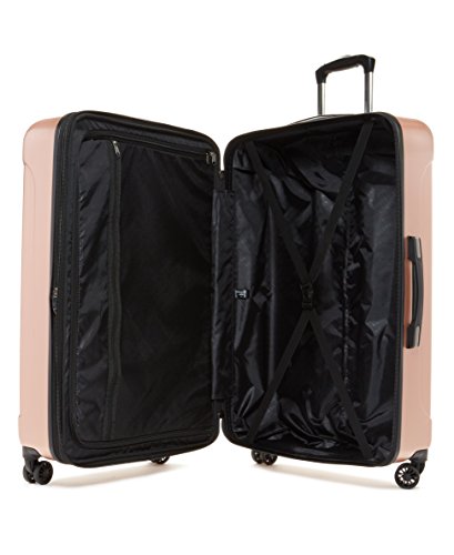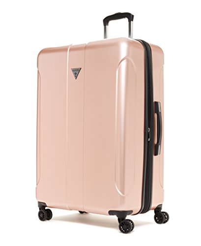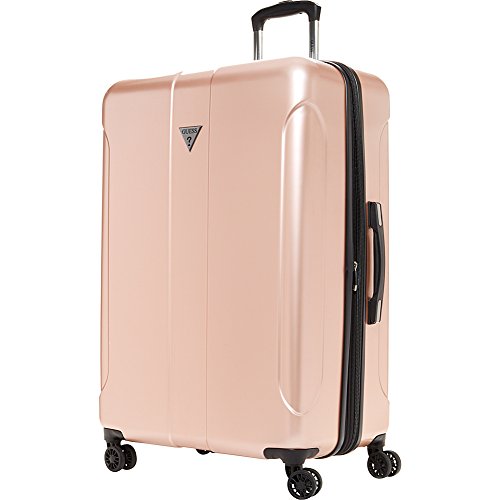 Studio : Guess Luggage Publisher : Guess Luggage Binding : Apparel Product Description GUESS fashion travel - luster 2 collection - 28" spinner upright. The features of this rose gold metallic piece include 8-wheel spinner design, highly impact resistant, light weight body construction, multi stop aluminum trolley system, top and side carry handles, interior organization, GUESS jewelry-crafted hardware, GUESS ID tag, and jewelry inspired zip pullers. Designed in los Angeles, 5 year limited warranty. 0