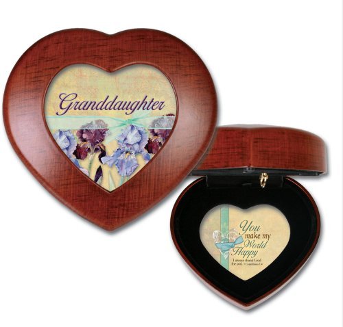 -. Title : Cottage Garden Granddaughter Woodgrain Petite Heart Music Box / Jewelry Box Plays Amazing Grace by Cottage Garden