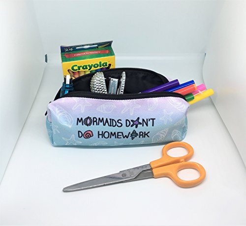 Mermaids Don't Do Homework Pencil Case Cosmetic Bag Easy to Travel for Kids, Teens, and Adults | Perfect for School, Makeup, or Smaller Toiletries| Shop WTF