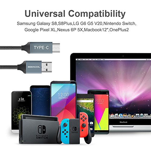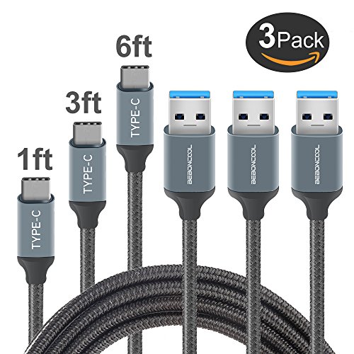 USB Type C Cable, BEBONCOOL USB C to USB A 3.0 Cable (1ft+3ft+6ft) Nylon Braided Type C Fast Charging Cable for Samsung Galaxy S8 / S8 Plus / Google Pixel XL / Nintendo Switch / Nexus 6P / MacBook