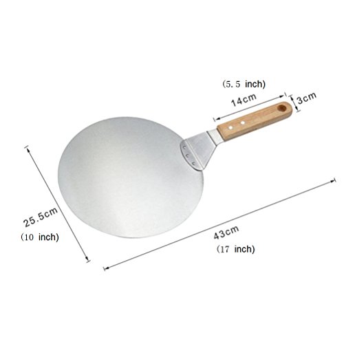 Studio : WJSYSHOP Publisher : WJSYSHOP Product Description Size: peel(diameter):25.5cm/10inch, handle(length):14cm/5.5inch. 10 inch diameter so fits a wide assortment of cakes and pizzas, wide 10 inch diameter head is big enough for most cakes. Easily transfer pizza, bread, and other food in and out of oven or grill. Prevent the baker from burning their hands. Easy grip handle - ensures a firm hold when moving cakes. Great for home kitchen use. Package Include: 1 x Pizza Peel Note: 1. The real color of the item may be slightly differently from the pictures shown on the website caused by many factors such as the brightness of the computer screen or the lighting levels; 2. The size is hand-measured, please allow a slight deviation within 2 cm;