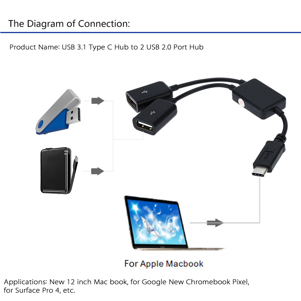 USB 3.1 Type C Hub to 2 USB 2.0 Port Hub.