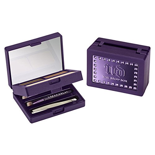 Maintaining your brows shouldn't involve a small army of products and a sizeable amount of real estate in your bag, so Urban Decay created an all-in-one Brow Box. Packed with all the tools you need for amazing brows in one palm-sized kit, the deluxe collection of products keeps you glam wherever you are. Sturdy and soft to the touch, the double-layer compact has a custom metal cover with an embossed Urban Decay logo and pyramid studs for a cool, edgy vibe. The top tier holds the powders and wax while the bottom tier holds the tools. Kit includes: - Brow Powder in two shades (0.04 oz. each): blend the shades together to create your perfect shade for natural-looking results. - Perfecting/Setting Wax (0.05 oz.): a pliable formula infused with nourishing aloe, beeswax and coconut that provides the perfect amount of grip without being sticky. - Metal Mini Tweezers - Mini Angled Brushes - Mirror - Magnifying Mirror