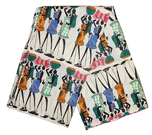 African Fabrics Super Wax Print Material 6 Yards - Premium Quality (Beige, Harvesters)
