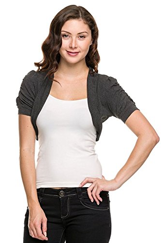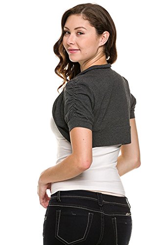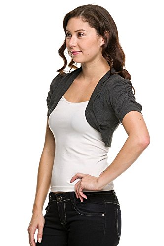 -. Binding : Apparel -. Brand : Hollywood Star Fashion -. Department : womens -. Feature : 95% cotton, 5% spandex / Imported / Hand or machine wash cold / Ruched puff short sleeves / Open front, Contour fit. -. ProductGroup : Apparel -. ProductTypeName : SHIRT -. Title : Hollywood Star Fashion Women's Ruched Short Sleeves Cropped Open Shrug Jacket