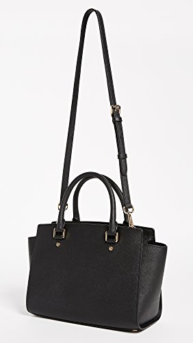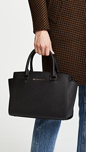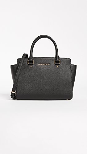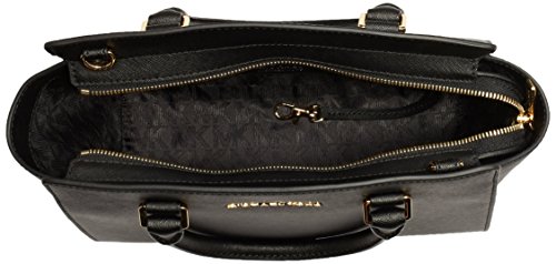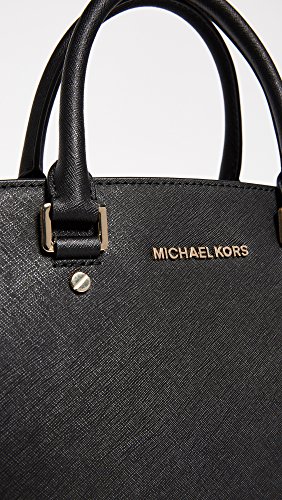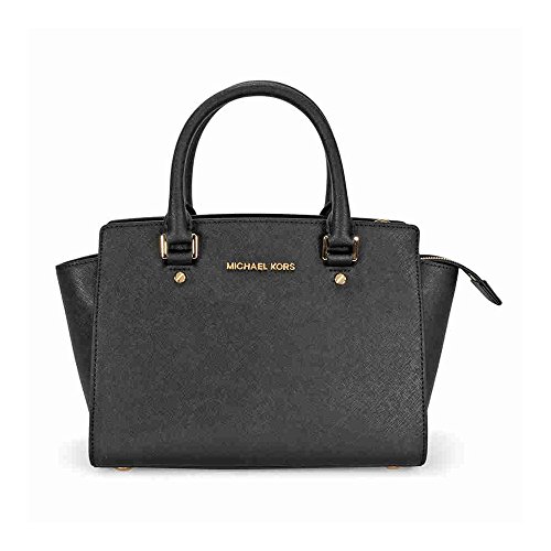 Studio : MICHAEL Michael Kors Publisher : MICHAEL Michael Kors Binding : Accessory Product Description A luxe saffiano leather MICHAEL Michael Kors satchel in a classic silhouette. Logo lettering at front. The zip top opens to a logo-lined interior with 3 pouch pockets and 1 zip pocket. Metal feet. Rolled handles and optional shoulder strap. Dust bag included. 0