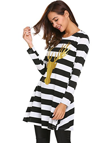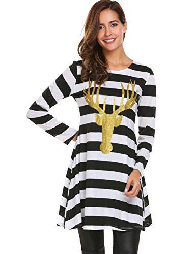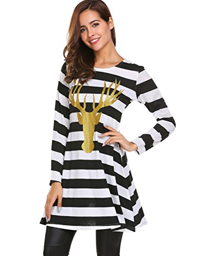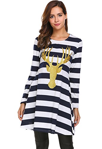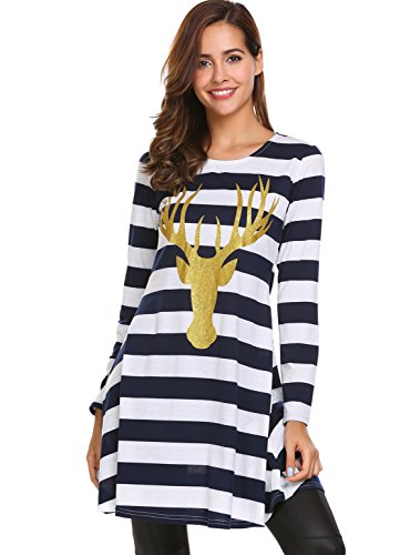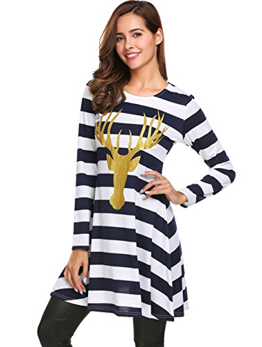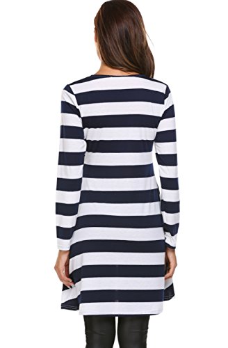 Zeagoo Womens Comfy Swing Tunic Long Sleeve Striped T-shirt Dress
