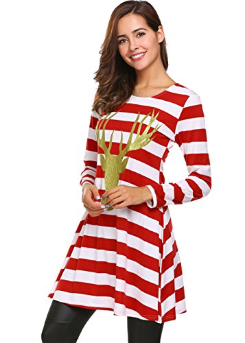 Christmas Dresses For Women,Striped Casual Long Sleeve A-line Loose T-shirt Dresses Knee Length