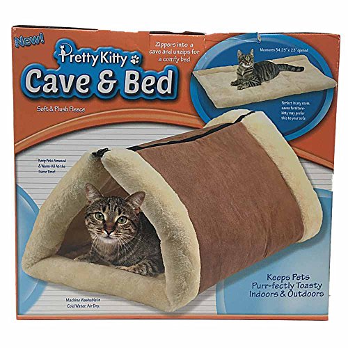 -. Binding : Misc. -. Brand : Pretty Kitty -. EAN : 0084358049058 -. Feature : Made with soft and plush fleece / 2-in-1 comfy cat mat. Unzip to convert in seconds from a tube bed to a full size cat mat / Comfy, warm and cozy. Cats love hiding, playing and lounging in the tunnel design. / Portable, lightweight and Machine-washable. Large enough for small-to-medium dogs too. / Measures 34.25"x23" Opened -. Label : Etna Products -. Manufacturer : Etna Products -. MPN : 5809275 -. PackageQuantity : 1 -. PartNumber : 5809275 -. ProductGroup : Pet Products -. ProductTypeName : PET_SUPPLIES -. Publisher : Etna Products -. Studio : Etna Products -. Title : Plush Cat Cave and Bed -. UPC : 084358049058