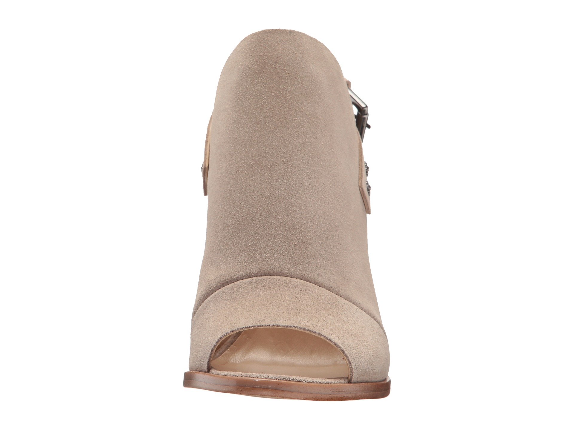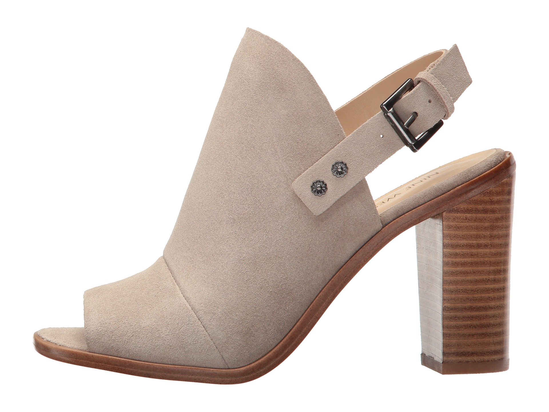 | Product Information SKU: #8878165Achieve the perfect contemporary look for any occasion with the versatile Nine West? Pickens open-toe booties.Available in a variety of upper materials.Slingback strap with buckle closure.Open toe.Man-made lining.Lightly padded footbed.Stacked chunky heel.Man-made outsole.Imported.Product measurements were taken using size 5, width M. Please note that measurements may vary by size.Weight of footwear is based on a single item, not a pair.Measurements: Heel Height: 3 1?2 in Weight: 11 oz |