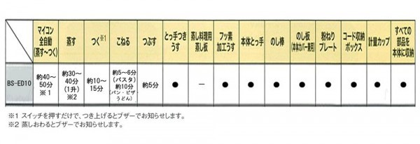 | 付属品 | みそ羽根 計量カップ のし棒 粉ねりプレート 取扱説明書(保証書付、保証期間:お買い上げ後1年間) |